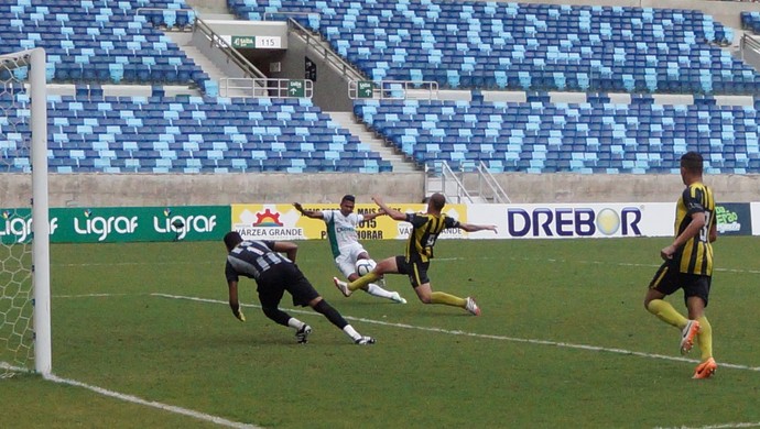 O primeiro tempo foi em ritmo de treino para o Cuiabá. Apesar do Rondonópolis ter tomado a iniciativa, o Dourado soube controlar bem a partida e abriu o placar aos 22 minutos com Raphael Luz, que aproveitou rebote do goleiro Naldo após chute de Maninho. O Leão não teve chances claras de empatar e teve mais perigo nas bolas paradas.